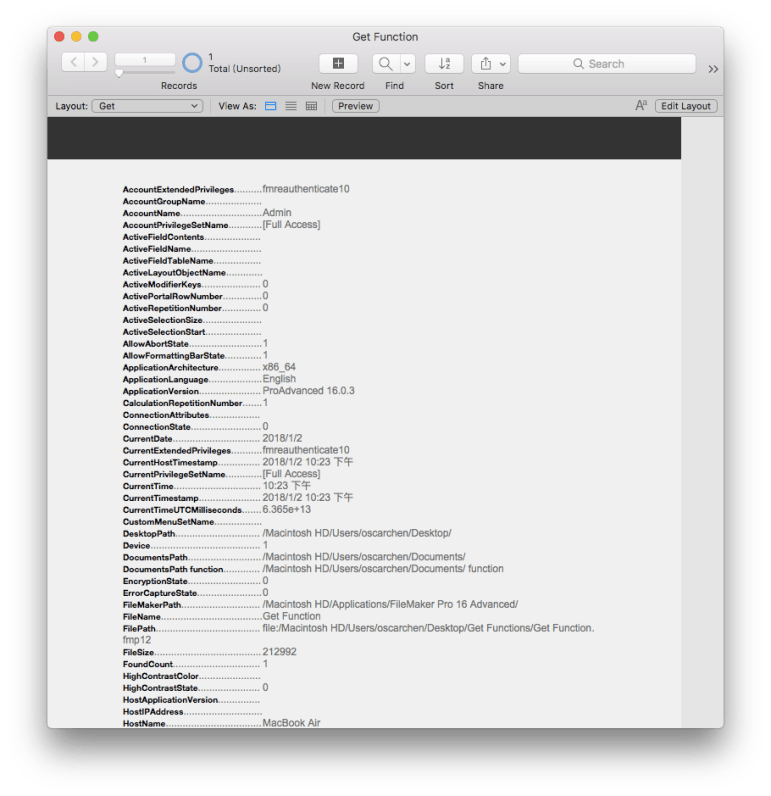 FileMaker 有一組很重要的 Get Function 函數 利用 Get Functions,我們可以 … 繼續閱覽 [FileMaker] Get Functions 的學習